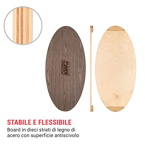 BoarderKING Indoorboard All-Rounder- Tavola di Equilibrio per Surf e Skate Indoor, Tavola Propriocettiva per NeuroMuscular Response Training, Tappetino Protettivo, 100 mm x 33 cm, Noce