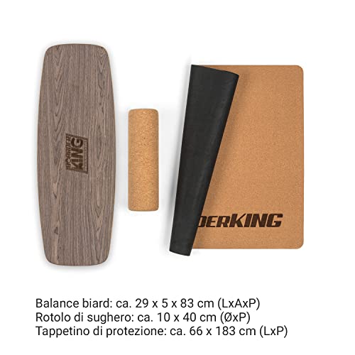 BoarderKING Indoorboard Curved - Balanceboard, Skateboard, Surfboard, Trickboard, Balance Board, incl. Rullo di Sughero 10/40 & Tappetino Antiscivolo, Materiale: Legno & Sughero, Noce