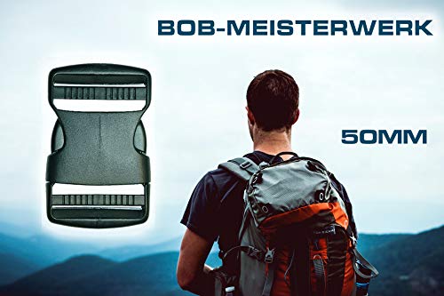 BOB-MEISTERWERK Fibbie Plastica, Nero 10mm, 15mm, 20mm, 25mm, 30mm, 40mm, 50mm, Fibbia Zaino Sgancio Rapido, per Cucito, Accessori, Borse, Abbigliamento, Prodotto in Europa (Nero 50MM (2 Pezzi))