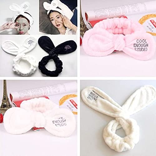 BOBEINI Donna Ragazze Filo di Ferro Spa Fascia Larga Regolabile Orecchie di Coniglio Carino Bowknot Fascia per Capelli Lettere Trucco Ricamato Turbante Copricapo 6 Colori Nero