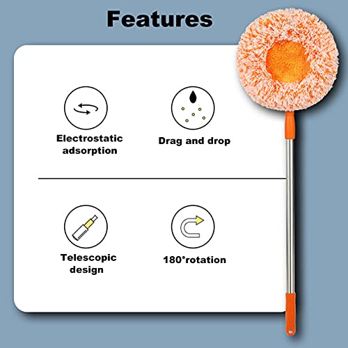 Pulitore versatile: la maniglia può essere regolata liberamente e la testa del mocio può essere ruotata a più angolazioni. Uno strumento di pulizia perfetto per pulire il soffitto, gli angoli, il fondo del divano, ecc. Anche un pratico strumento per la pulizia dei pavimenti, il lavaggio dell'auto, la pulizia del vetro, ecc.