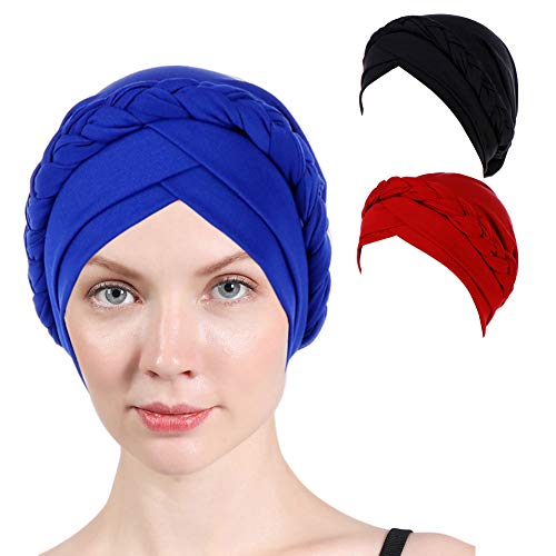 BOBIBI 3 Confezioni da Donna turbano Musulmani Cappelli, colorato Floreale Stampato Una Treccia Elegante Turbante Avvolgente per Cancro Chemo - Taglia Unica