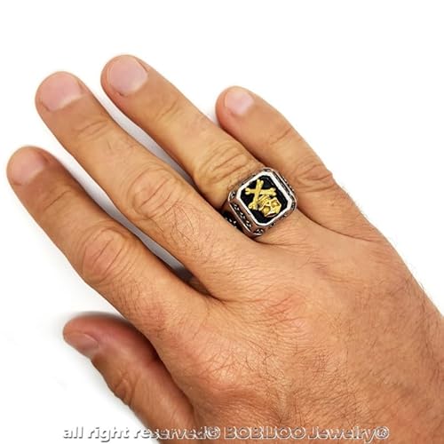 Bobijoo Jewelry - Anello chevalier da testa di morte Argento Oro Croce cavalieri templari acciaio inossidabile Biker