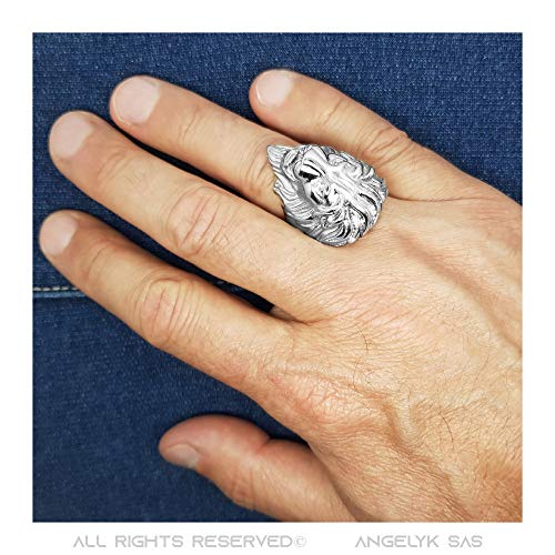 BOBIJOO JEWELRY - Anello Anello Uomo di Leone di Testa Circo Gitano Gipsy in Acciaio Placcato Oro Argento-Tono - 24 (11 US), Acciaio Inossidabile 316