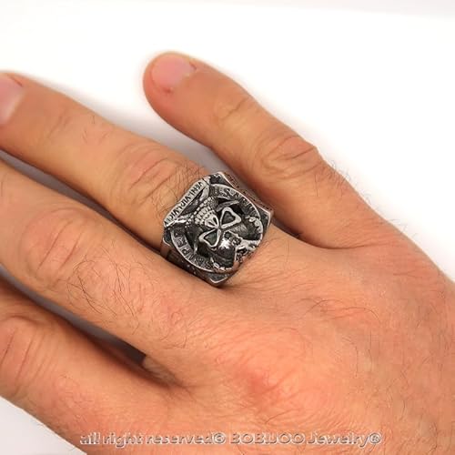 BOBIJOO JEWELRY - Anello Anello Uomo Testa di Morte Cranio U. S. Army Sniper Acciaio Veni Vidi Vici - 17 (8 US), Acciaio Inossidabile 316