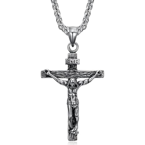BOBIJOO JEWELRY - Catena d'argento dell'acciaio inossidabile del pendente della croce dell'uomo di Cristo Gesù