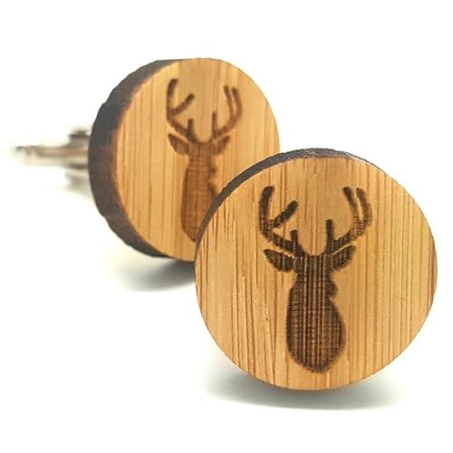BOBIJOO Jewelry - Gemelli, In Legno Naturale, Testa Collo Cacciatore, L'Uomo Di Metallo