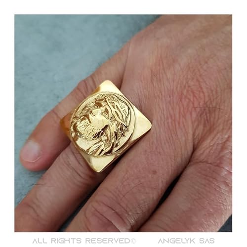 BOBIJOO JEWELRY - Gesù Signore Cristo Anello con Sigillo degli Uomini in Acciaio Inox Placcato Oro - 27 (12 US), d'oro - Acciaio Inossidabile 316