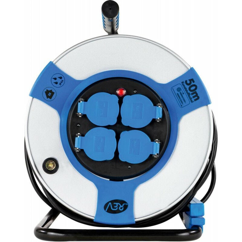 Cavo tamburo lamiera d'acciaio IP 44 • 4 prese di contatto protettive antistress • Linea di alimentazione: H05VV-F 3G15 mm² • Per uso esterno temporaneo IP 44 • 230 V~. 3000 W • Con maggiore protezione da contatto • Dischi tamburo in lamiera d'acciaio • Interruttore termico come protezione da surriscaldamento con barriera di riavvio • Tappo protettivo in PVC IP 44 • Supporto in tubolare d'acciaio verniciato • Cuscinetto elastico del corpo del tamburo • Il freno di stazionamento può essere spostato • Clip per cavo per il fissaggio della linea • Versione compatta con supporto in metallo • Maniglia di avvolgimento girevole • Costruzione isolata protettiva • Prese fisse • Comoda maniglia bicolore • Con guida del cavo sul supporto Nessun articolo di magazzino! L'approvvigionamento avviene con breve preavviso. Osserva il VE! L'articolo è escluso dal reso!