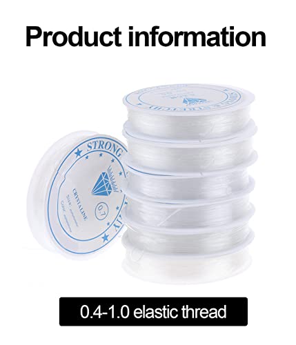 6 bobine 0,4 mm-1,0 mm filo elastico per gioielli filo di gomma filo trasparente filo da pesca resistente allo strappo con ago per perline e forbici per bracciali con perline