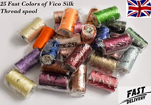 25 bobine di filo da ricamo per macchina da cucire nei colori di base e più richiesti, lucenti come seta. Ciascun rocchetto contiene 500 metri di filo, 5000 metri in totale.Filo classico n.40 in rayon/viscosa.