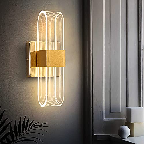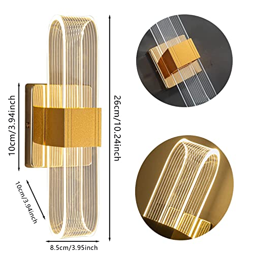 BOBOPAI Applique Da Parete A LED Dimmerabile, Lampada Da Comodino Moderno, Lampada Da Parete Ovale in Acrilico 12W Per Corridoio Ufficio Camera Da Letto Soggiorno, H26CM, 2 Pezzi,D'oro