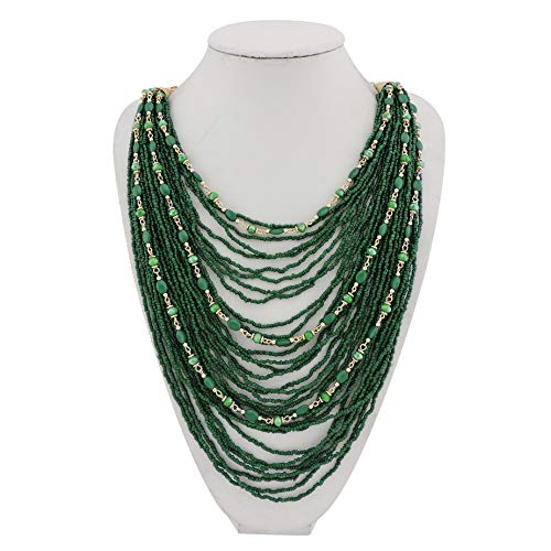 Bocar Collana di affermazione di Perline di Seme a Catena Lunga Multistrato (NK-10410-deep Green)