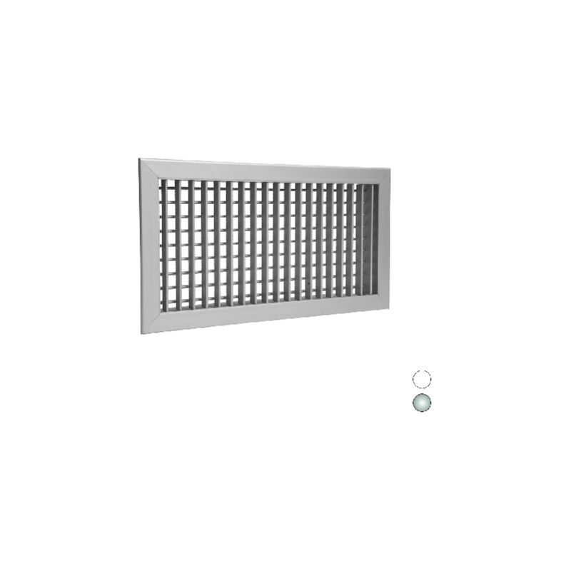 Bocchetta di mandata ad alette orientabili passo 20 mm. Impiego a parete. Altezza di installazione: 2,5 - 3,5 m. Fissaggio standard con clips. In alluminio.
