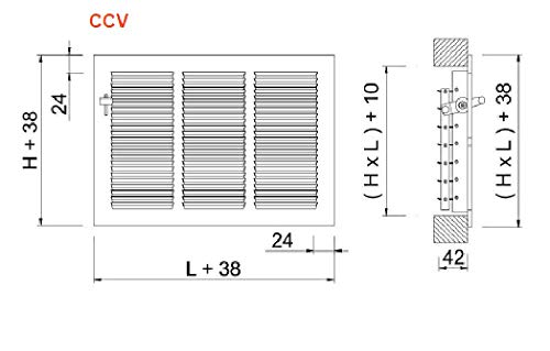 Bocchetta stampata in acciaio zincato per mandata o ripresa ditta MADEL modello CCV con serranda compreso comando manuale esterno (CCV 400X400)