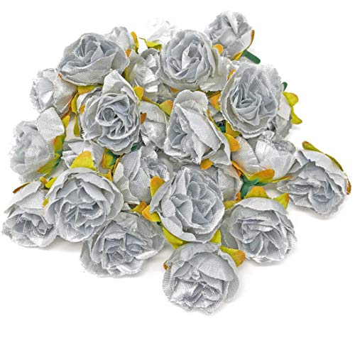 Mini boccioli di rosa sintetici in finta seta, colore argento, Tessuto, Silver, 25-30mm