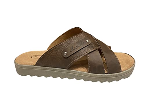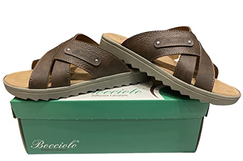 Bocciolo Diffusion Calzature Max Ciabatta Uomo Aperta Classica Pelle Made in Italy Articolo 820 (Marrone, numeric_41)