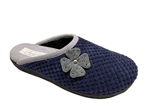 BOCCIOLO Sofia Ciabatta Donna Chiusa in Punta con Fiore Applicato Comoda Leggera Made in Italy Tacco 3 cm Articolo BRP91-F (Blu, numeric_38)