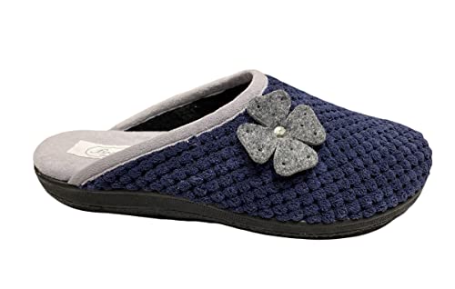 BOCCIOLO Sofia Ciabatta Donna Chiusa in Punta con Fiore Applicato Comoda Leggera Made in Italy Tacco 3 cm Articolo BRP91-F (Blu, numeric_36)