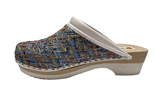 Bocciolo Emma Noviolenzacontroledonne Zoccolo Chiuso Donna Leggero Tessuto Pelle Legno Made in Italy Articolo 5Z (Azzurro, Numeric_40)