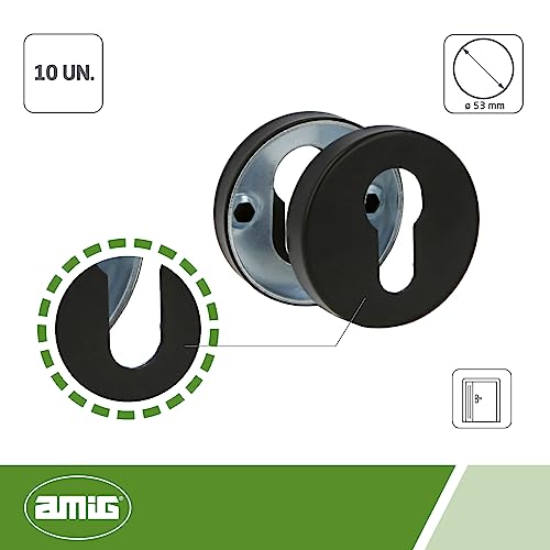 Amig - Boccola per Maniglie a Rosetta Rotonda | Mod. 3RX | Ø53 mm | Chiusura | Compatibile con Cilindro Europrofilo | Acciaio inossidabile nero