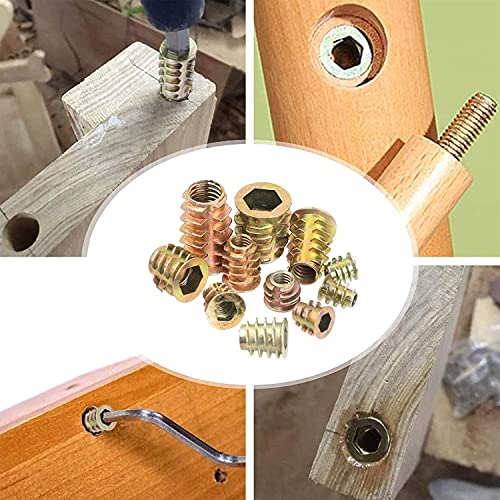 Boccole Filettate per Legno Inserti Filettati M4 M5 M6 M8 M10 Inserto Filettato Legno 230pz Assortimento Dadi Esagonali in Lega di Zinco per Mobili in Legno