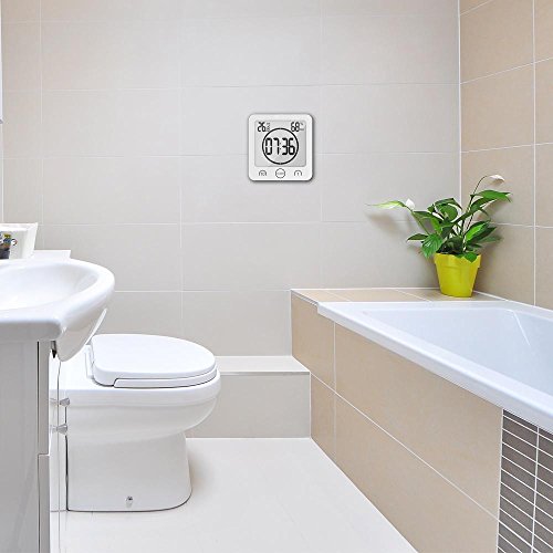 Bodecin Orologio digitale impermeabile da doccia con grande display LCD, indicatori umidità, temperatura, timer, controllo touch intelligente per bagno, doccia, trucco, cucina White