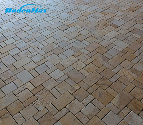 [DESIGN] - Ogni set contiene 9 piastrelle in travertino BodenMax. Misure: 30 cm x 30 cm x 2,5 cm, copre un'area di 0,81 m². Per coprire una superficie di 1m² sono necessarie 11 piastrelle. Per uso esterno (ex. giardino, terrazza, balcone, piscina) e interno (ex. salotto, bagno, cucina)