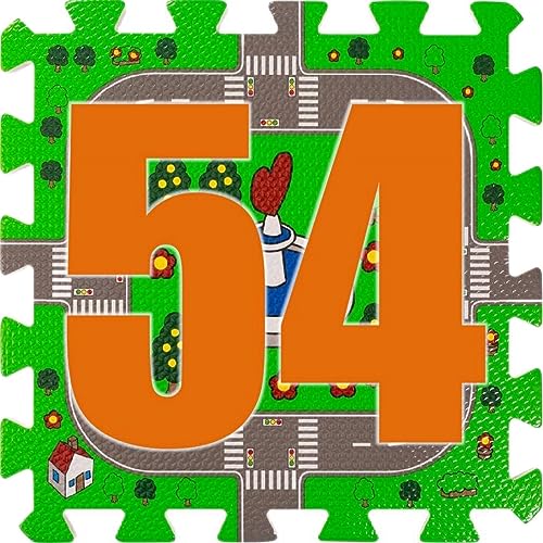 BodenMax Tappeto da gioco a puzzle per bambini antiscivolo antiurto morbido 30x30x1 cm | Mappa città | 54 pezzi