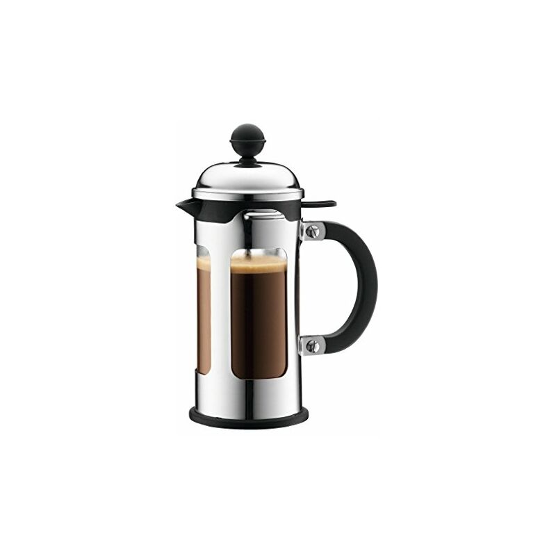 In terms of excellent coffee brewing, manual labour is more popular than ever - that is if pressing a plunger can be qualified as manual labour. The French press lets the coffee beans develop their fullest aroma so it doesn't come as a surprise that it is the brewing method of choice for coffee tasters trying to determine quality beans. The simplest route to an excellent cup of coffee: coarsely ground coffee, hot water, wait for 4 minutes and press down the plunger. The Chambord has been a classic almost from the day it came out - still is and always will be. This latest update comes with a lid that closes off the spout which makes the Chambord spill-proof should it get knocked over. It also makes for better temperature control. The Chambord is made from borosilicate glass, plastic, chrome-plated steel and silicone and is dishwasher safe. It is 19cm/7.5in tall and can hold up to 3 cups/0.35l/12oz of coffee