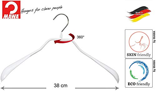 MAWA Bodyform - Grucce a Spalla Larga, Adatte per Giacche e Cappotti, 10 Pezzi, Gancio Girevole a 360°, con Rivestimento Antiscivolo Non inquinante, 38 cm, Bianco
