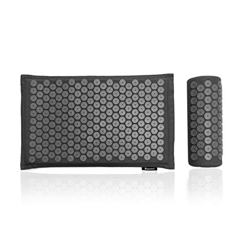 BODYMATE Set universale per agopressione, con cuscino cervicale e borsa per il trasporto, tappetino massaggiante per auto-guarigione, meditazione e relax, dispositivo terapeutico per casa, nero/nero