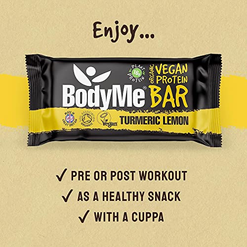 BodyMe Barrette Proteiche Vegan Bio | Cruda Curcuma Limone | 12 x 60g Barretta Proteica | Senza Glutine | 16g Proteine Vegane Complete 3 Proteine Vegetali Tutti Amminoacidi Essenziali | Snack Proteici