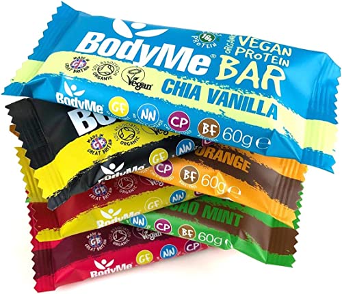 BodyMe Barrette Proteiche Vegan Bio | Pacchetto Prova Misto | 6 x 60g Barretta Proteica | Senza Glutine | 16g Proteine Vegane Complete 3 Proteine Vegetali Tutti Amminoacidi Essenziali | Snack Proteici