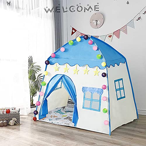 Boeek Tenda da Gioco,Portatile Castello Tenda Blu Casetta Tenda Principessa Principe Casa e Castello Giochi per Bambini,da Regalo di Compleanno per Ragazzi e Ragazze includere Due Luce(Blu)