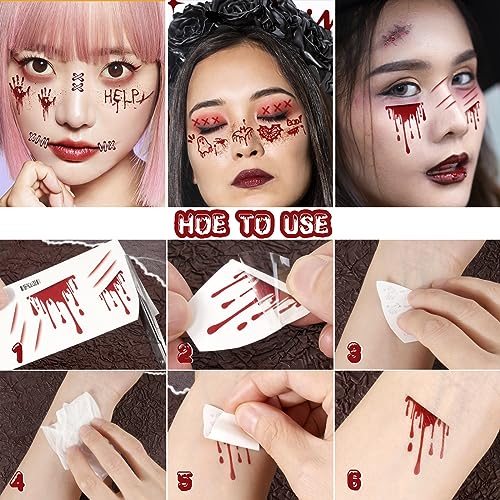 【Materiale】Le corna da diavolo sono fatte di plastica. La collana di perle con sangue è realizzata con perle finte e acrilico. I tatuaggi temporanei di Halloween sono realizzati con adesivi trasferibili.