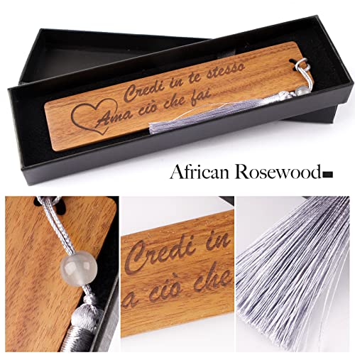 【Materiale】Il segnalibro in legno è realizzato in palissandro africano.