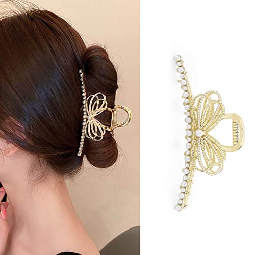 Bohend Grande Perle Pinze Artiglio per capelli Fiocco Fermaglio per capelli spesso Forte Larga Antiscivolo Accessori per acconciature per Donne Ragazze