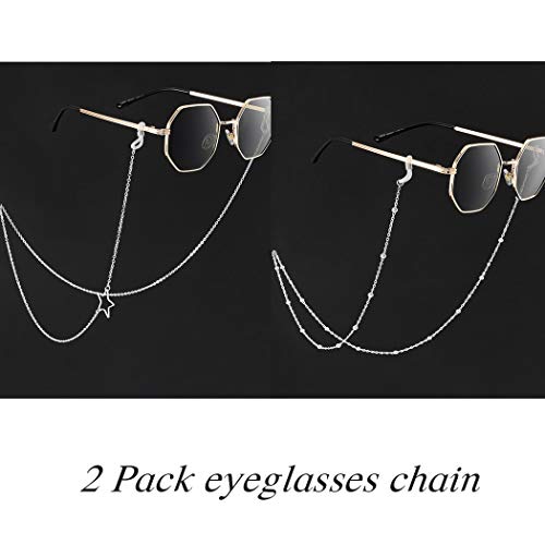 Bohend Moda Stella Catena di occhiali da sole Argento Donne Catena per occhiali Tallone Accessori per occhiali Per Occhiali da vista e occhiali da sole (2 pezzi)