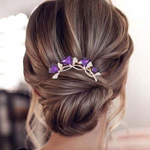 Bohend Strass Pettine Cristallo Pezzi di capelli Nozze Accessori per capelli Gioielleria per donne e ragazze (viola)