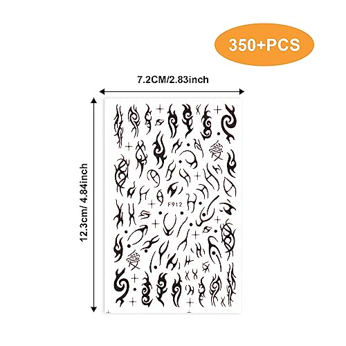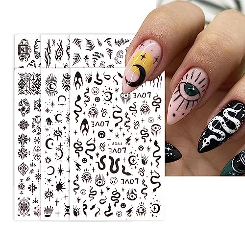 【Adesivi per unghie astratte nere】Riceverete 6 fogli (350+PCS) di adesivi per unghie, gli accessori per unghie dal design geometrico includono vari motivi neri 3D, come serpenti neri, rose, linee geometriche, totem, foglie, occhi, faccine, luna, stelle, sole e altri motivi classici neri di Halloween, rendono il vostro Halloween speciale e unico.
