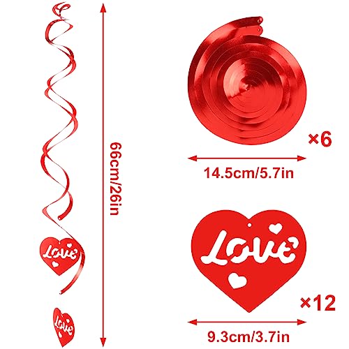 Bohrma 6 pezzi Appeso Cuore Turbinii San Valentino Soffitto Decorazioni Cuore Glitter e PET Cuore Rosso Turbinii Ornamento Ghirlande a Spirale Con Cuori per Natale Matrimonio Festa Decorazioni