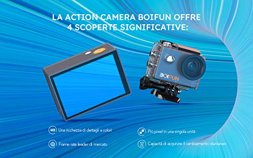 · 【Video Ultra HD 4K 30fps e immagini cristalline da 20 MP】 La action cam BOIFUN offre 4 migliorie significative: una gamma migliorata di colori;