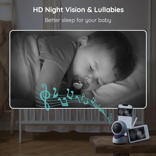 [Tieni d'Occhio Il Tuo Bambino Ovunque - Monitor LCD e Controllo Dell'App Mobile] Non solo puoi tenere d'occhio i momenti adorabili del tuo piccolo tesoro tramite il baby monitor da 5", ma anche tramite l'app mobile ovunque. Quando senti la mancanza del tuo bambino mentre sei fuori, basta aprire l'app.