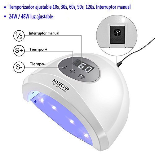 BOJECHER 24W/48W Lampade Unghie UV LED per Gel Unghie con Automatico Sensore Asciuga unghie e lampade UV con 5 Timer Preimpostati - Bianco