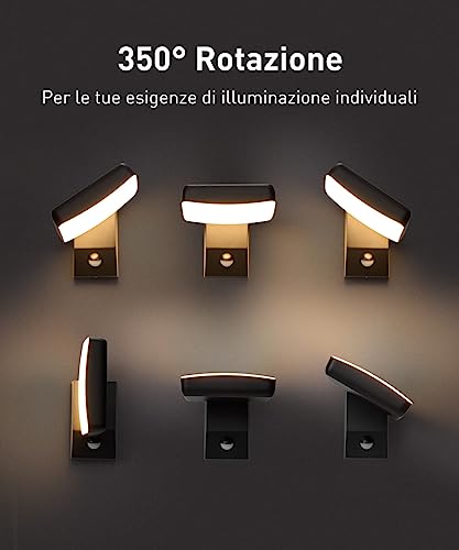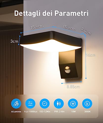 Impermeabile IP65: Applique da esterno con sensore di movimento è IP65 impermeabile, realizzata in alluminio di alta qualità, ha un'eccellente resistenza all'acqua, adatta per cortile, balcone, giardino, corridoio, scale e sala da pranzo, ecc.