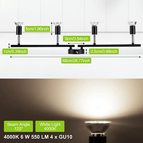 Bojim Faretti LED da Soffitto Orientabili, Lampadario con 4 Faretti, Lampada da Soffitto, Plafoniera Nera per Cucina, Camera da Letto, Include 4 Lampadine GU10 LED (6W, 550lm, 4000K Bianco Naturale)