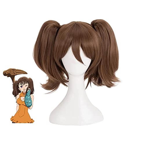 Bokerom Parrucca Cosplay Anime, Parrucca The Seven Deadly Sins, Doppia Coda Cavallo Marrone per Giochi Ruolo Diane Parrucche Accessorie Feste Halloween con Cappuccio Parrucca