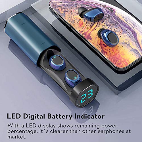 Bokman T2 Cuffie Bluetooth 5.0, Auricolari Bluetooth Senza Fili, Cuffie in-Ear Wireless IPX5 Impermeabili per Sport, Display a LED, Disegno del cassetto, Mic-Incorporato per iOS e Android(Blu)