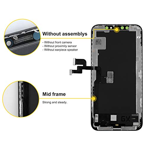 【Pacchetto incluso】- Il pacchetto include un nuovo schermo OLED dispaly touch per iPhone X e gli strumenti necessari per sostituire lo schermo. Questa parte NON include fotocamera frontale,altoparlante e sensore di prossimità, il che significa che dovrai trasferirli dal tuo vecchio schermo a questo nuovo.